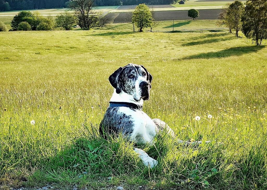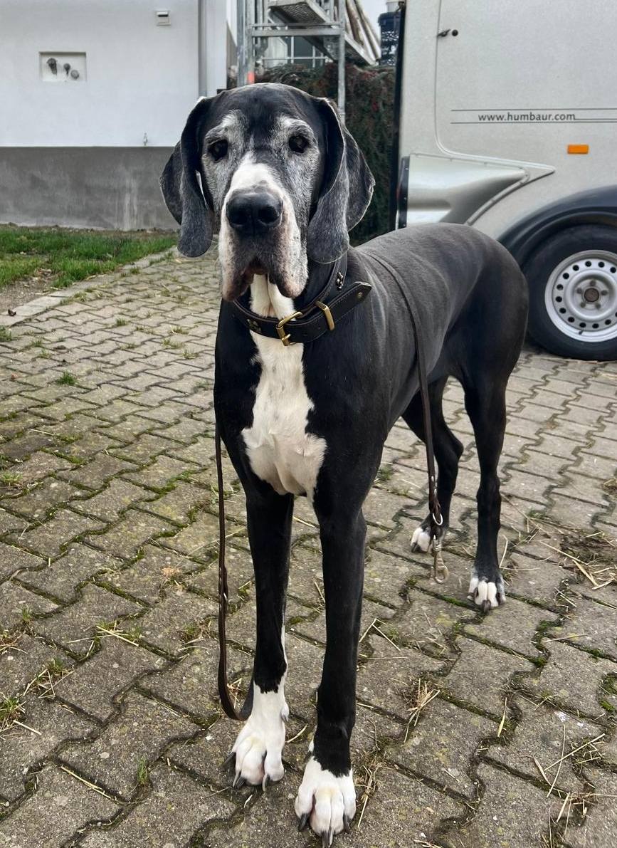 On this page I want to present the lovely oldies from my breeding programme, which started 2017 with my first litter in Germany (A-litter vom Irschener Winkel). You can find all my past litters here. My foremost breeding goal is health and longevity and improving the average lifespan of the great dane, which is unfortunately only 6,5 years. So every dog who gets older is already a little success, but of course I also don’t forget about the ones who died earlier. I am completely transparent with the data of death and health results of my dogs, you can find them all entered in the the international database www.danesworld.info. Without honesty we cannot improve the health problems of this breed! Unfortunately there are many breeders who prefer not to publish any data that might “damage” their reputation and prefer to advertise their few veterans. But there is NO breeding line on this planet without the common hereditary diseases of the great dane, they appear sooner or later. If we are not transparent and don’t collaborate, we cannot improve the situation of this wonderful breed, so breeders should be more worried about damaging the great dane than their reputation!